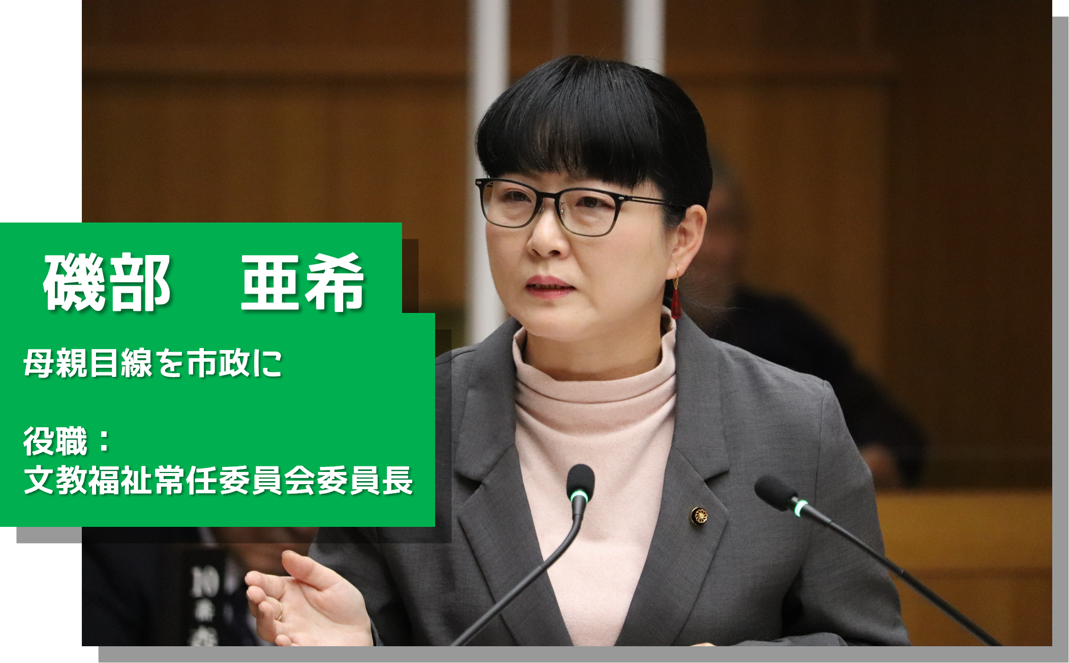 福祉分野や教育、防災の他、山間部での暮らしから地域課題にも関心をもっています。議会ではほぼ毎回一般質問にたち、より良い市政に向けて提案中。